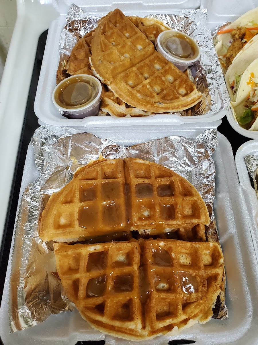 Had the chicken on a stick and ate it so fast that a photo was elusive... it was delicious family ordered the original chicken which was crunchy, tasty and very enjoyable, also ordered waffle & shrimp & fish, and finally chicken taco ...everyone enjoyed their meals, service was good The guys running it were nice and the did was quickly made up for us.... would definitely go here again fyi it's not a sit down restaurant just a walk in grab your food deal